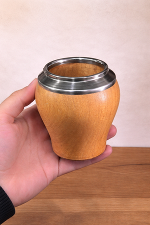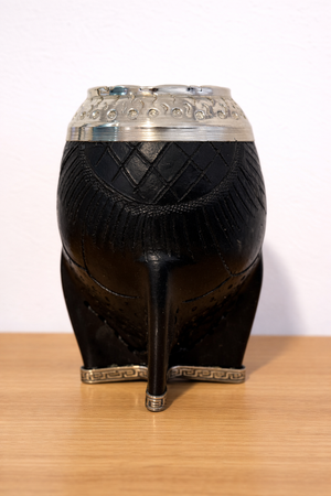 Torpedo cuero crudo alpaca cincelada costura al tiento