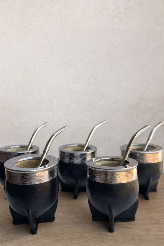 5 imperiales con virola y fleje de acero labrado 5 bombillas pico loro de acero inoxidable