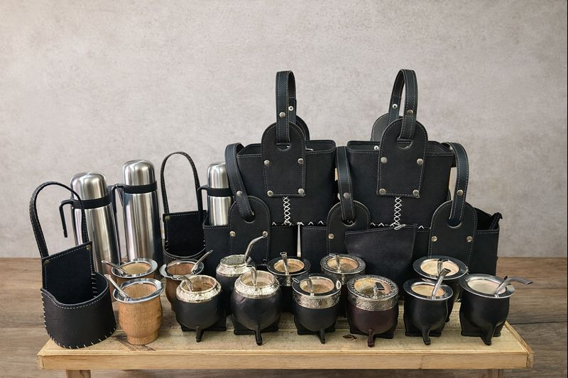 2 imperiales lisos 2 imperial cincelado 3 camioneros virola de acero 3 torpedos cincelados 3 camioneros de algarrobo 10 bombillas pico loro 3 bombillas chatas 5 canastas de cuerina 2porta mate 2 juego de chau lata 3 termos media manija