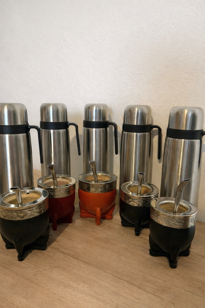 5 IMPERIALES ALPACA LISA, CUERO GRUESO Y 100% CALABAZA + 5 BOMBILLAS PICO LORO ACERO INOX + 5 TERMOS MEDIA MANIJA 1L