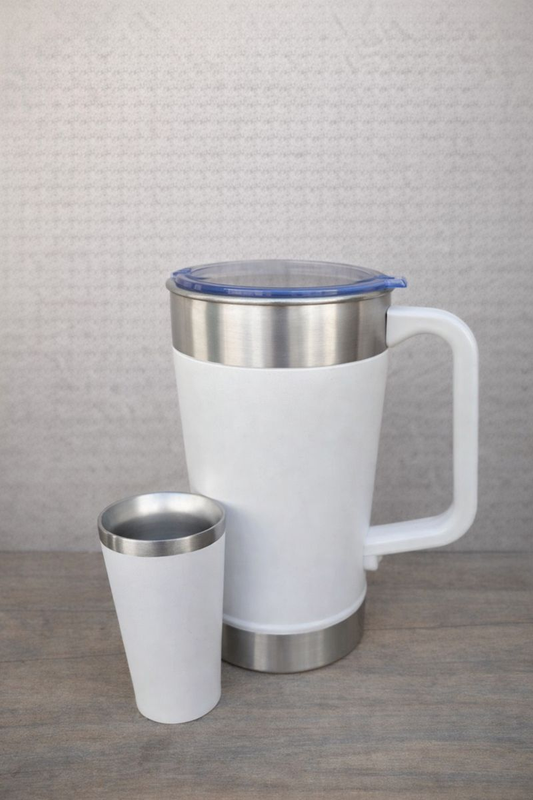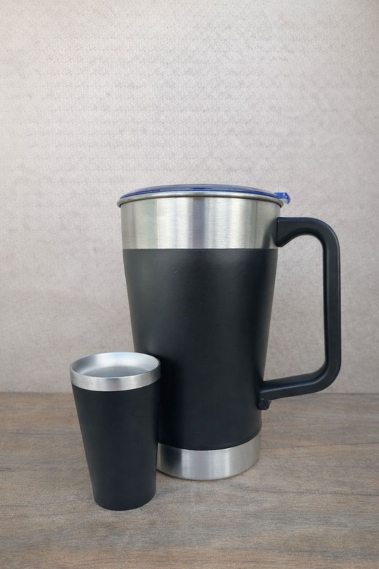 Jarra, vaso y bombilla chata