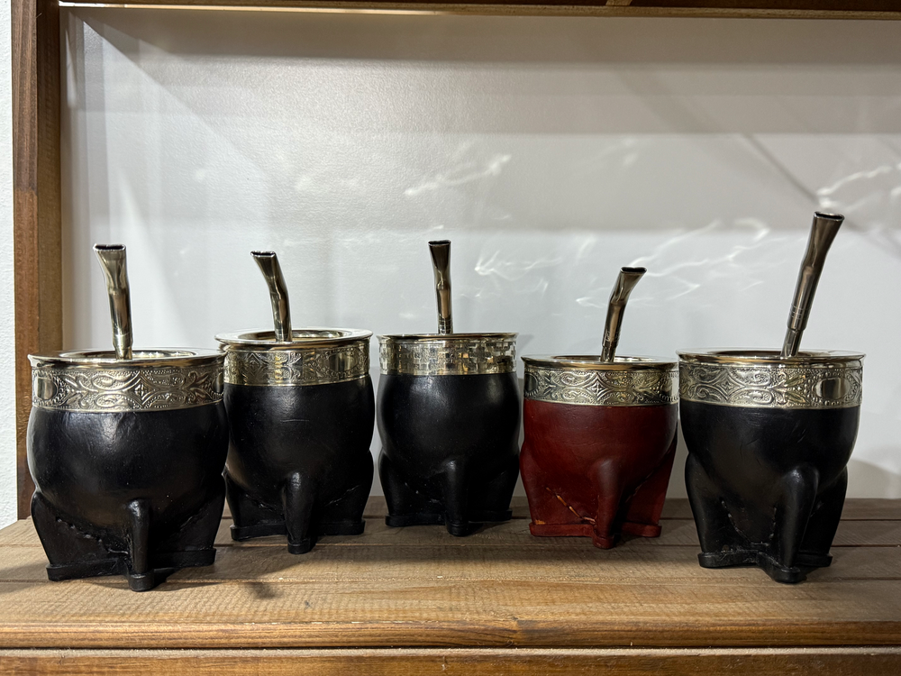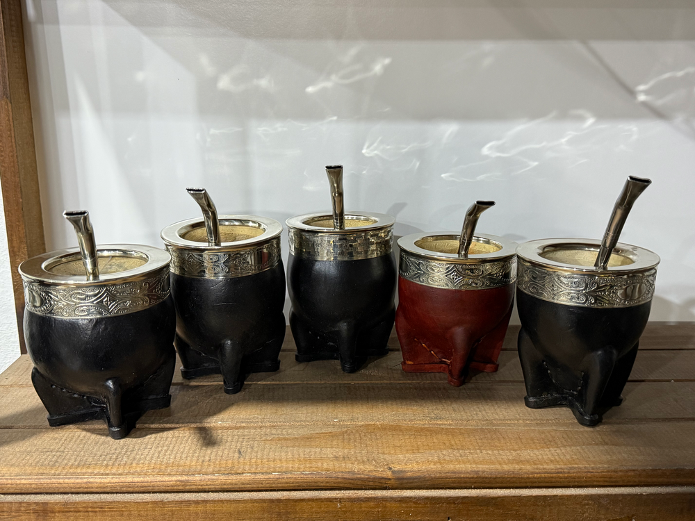 5 imperiales lisos de alpaca cuero y calabaza con 5 bombillas de acero inox