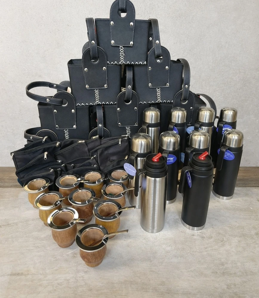 5 termos media manija negros con base y tapa gris