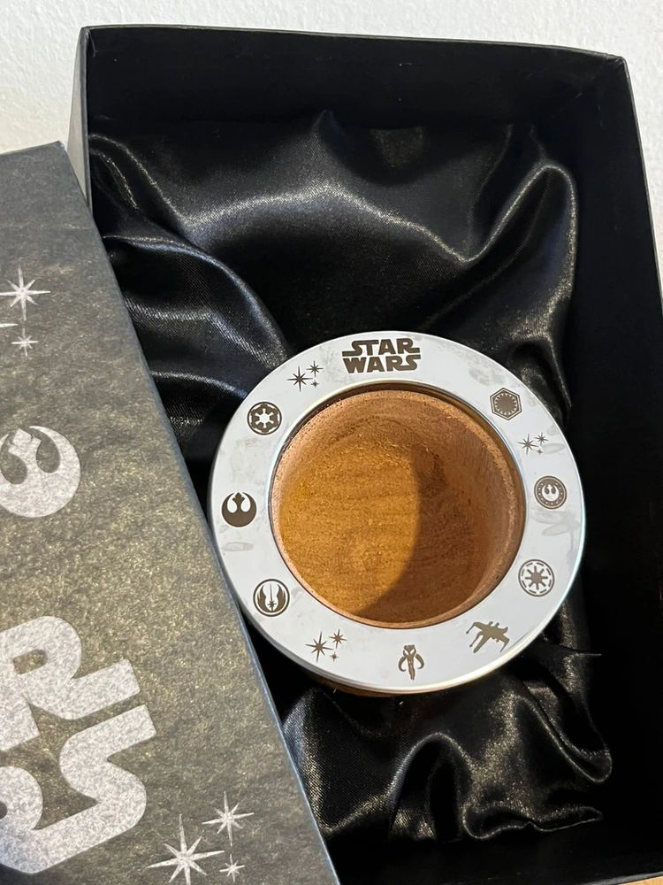 Contiene caja de presentación grabada, camionero de algarrobo grabado y bombilla chata