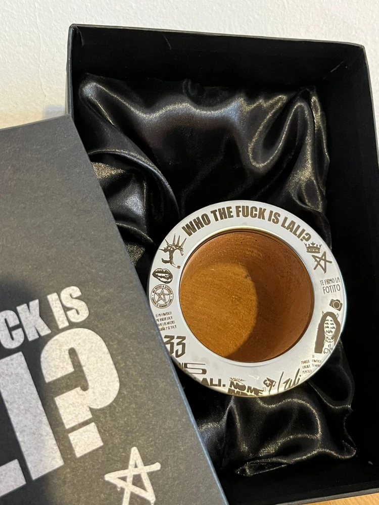 Contiene caja de presentación grabada, camionero de algarrobo grabado y bombilla chata