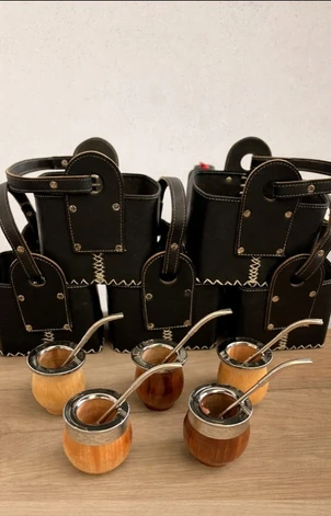 contiene 5 canastas de cuerina, 3 camioneros de algarrbo laqueados, 2 imperiales de algarrobo laqueados y 5 pico loro
