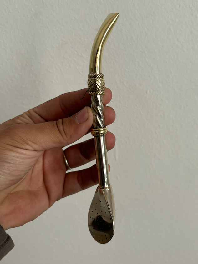 100% Artesanal Alpaca y bronce Caño cincelado de alpaca con dijes de bronce